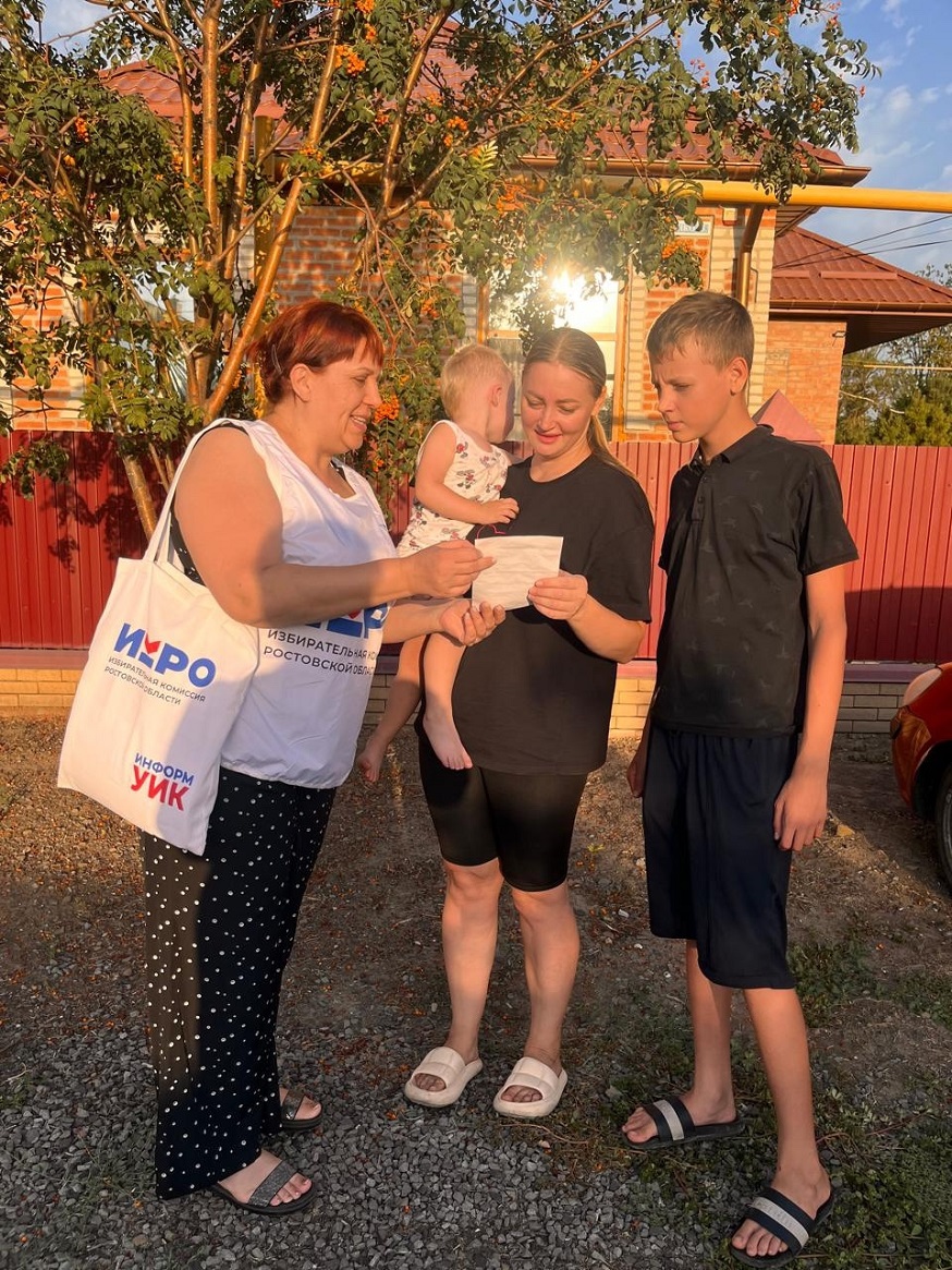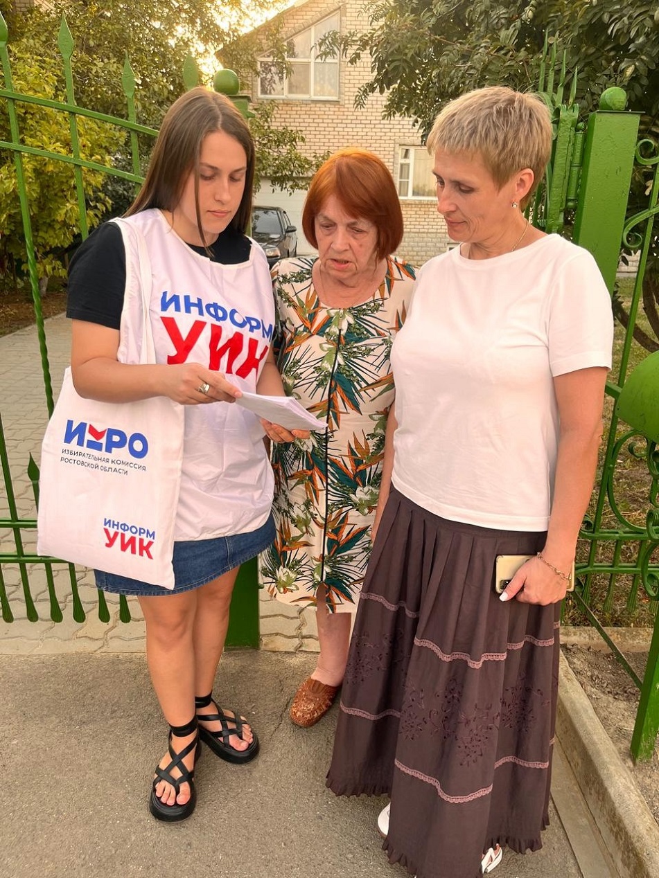 На Дону проходит адресное информирование избирателей в рамках проекта «ИнформУИК». Члены комиссий вручают избирателям персональные приглашения на выборы главы региона и отвечают на вопросы о голосовании.